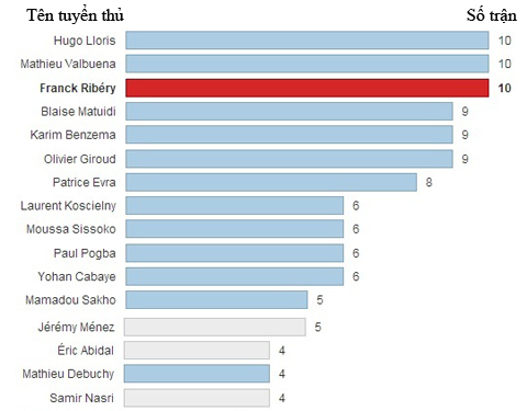 Điều đó được chứng minh bằng thống kê đội tuyển Pháp thắng 61% các trận khi vắng Ribery, trong khi với sự có mặt của ngôi sao Bayern Munich trên sân thì Les Bleus chỉ giành 50% trận thắng.